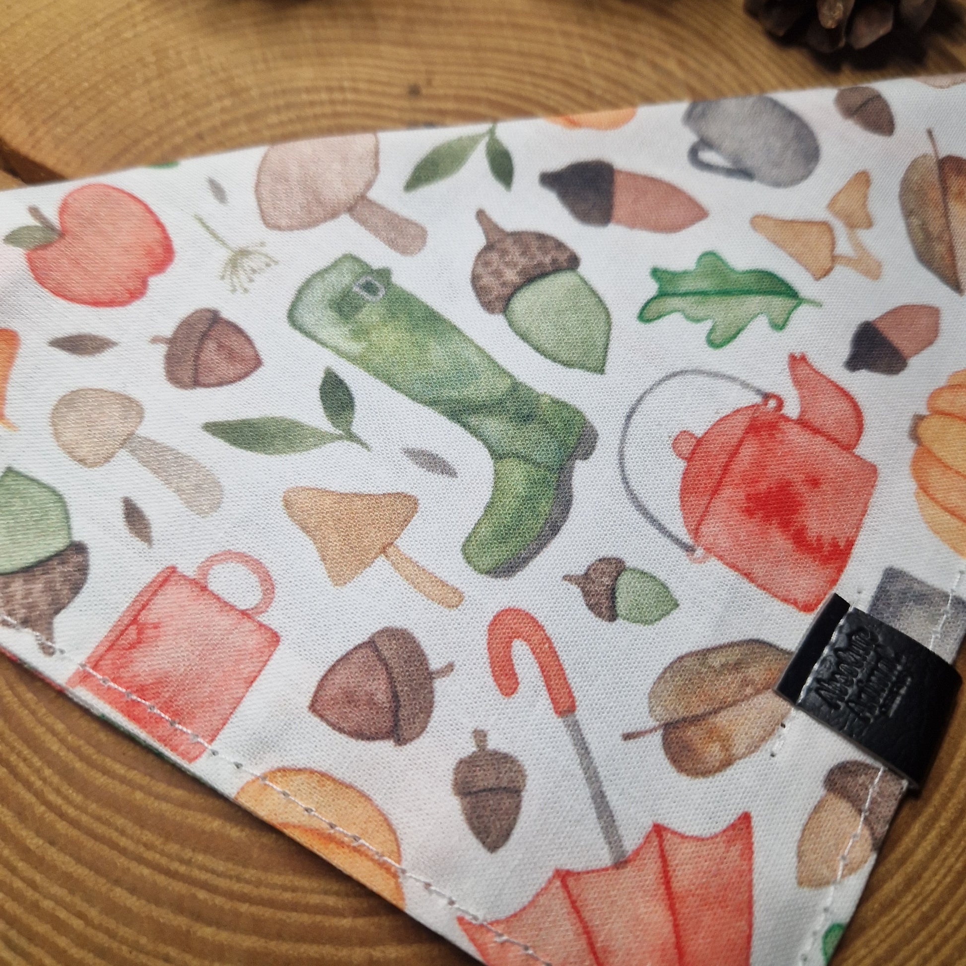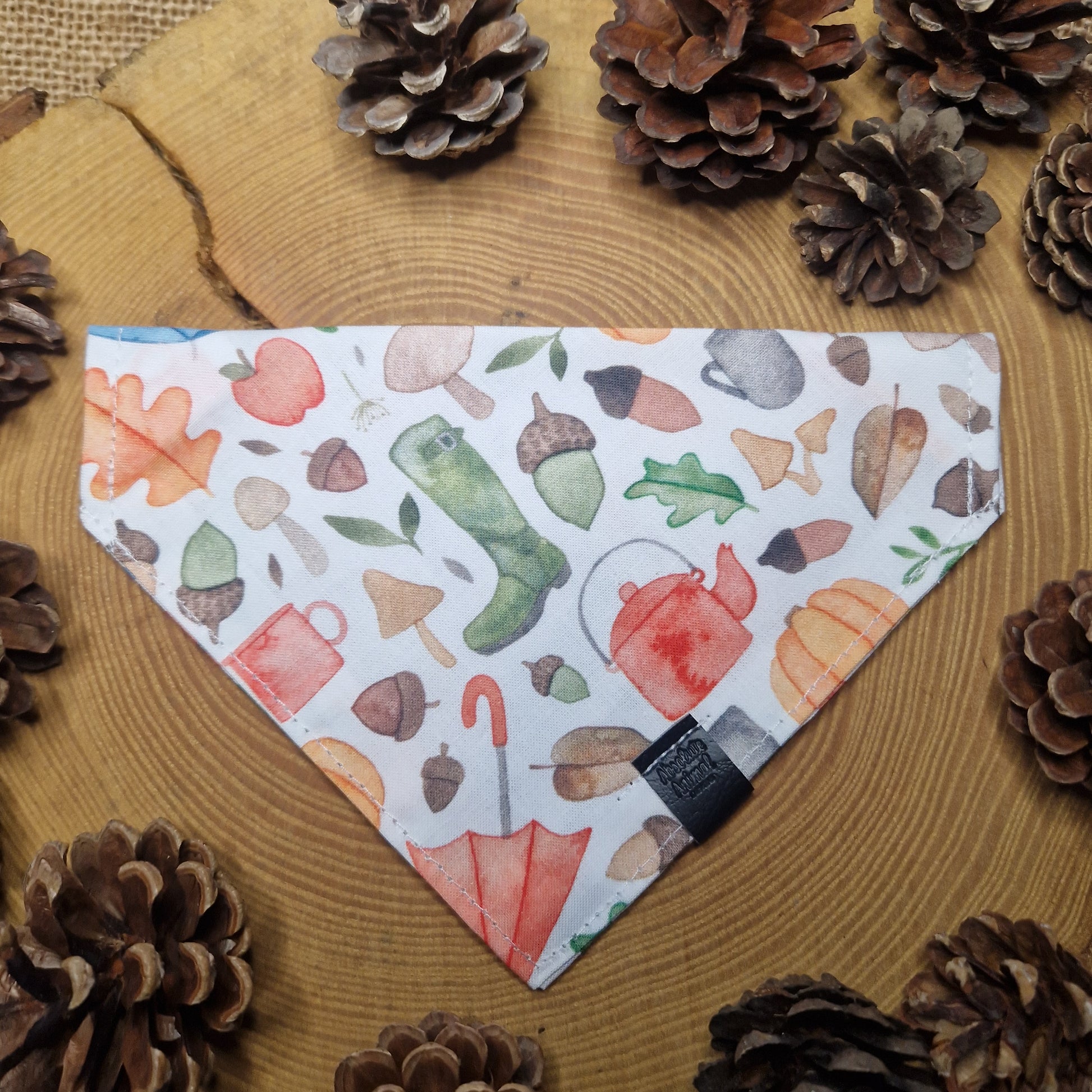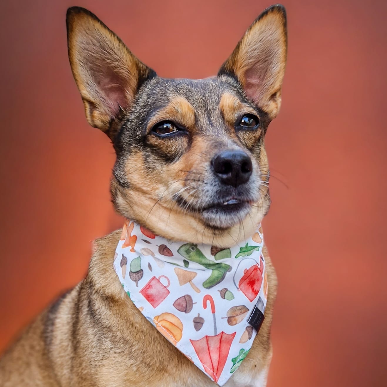 Our bandanas are all handmade using high quality fabric. They have a channel which slides over the collar for safety and to prevent it getting lost. Please note that pattern placement may vary with sizes as they are all carefully hand made.