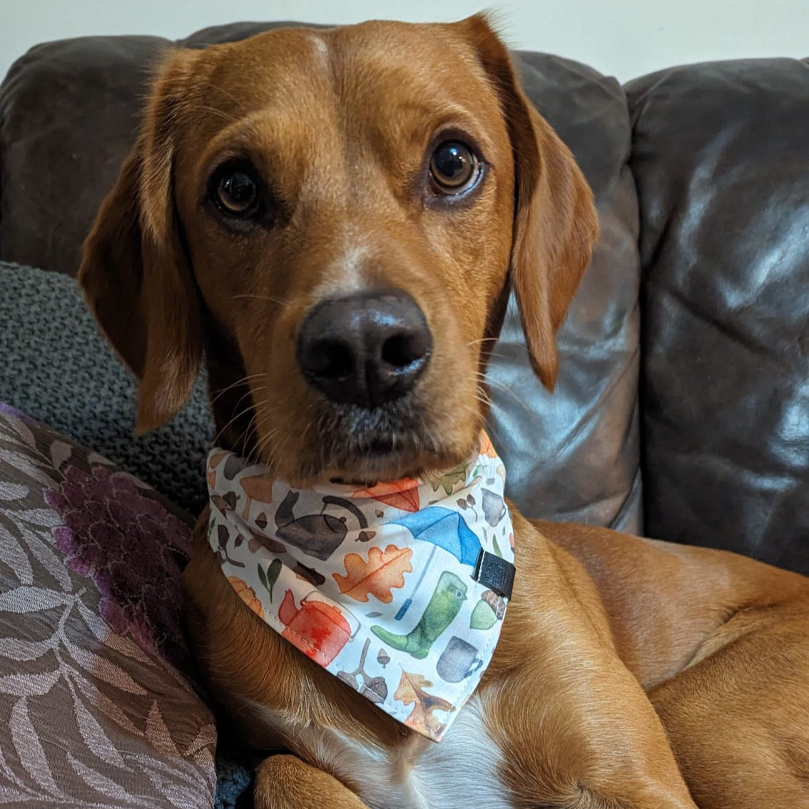 Dog bandanas are a fun accessory, dogs should not be left alone whilst wearing them. Please check bandanas regularly for any signs of wear and tear.